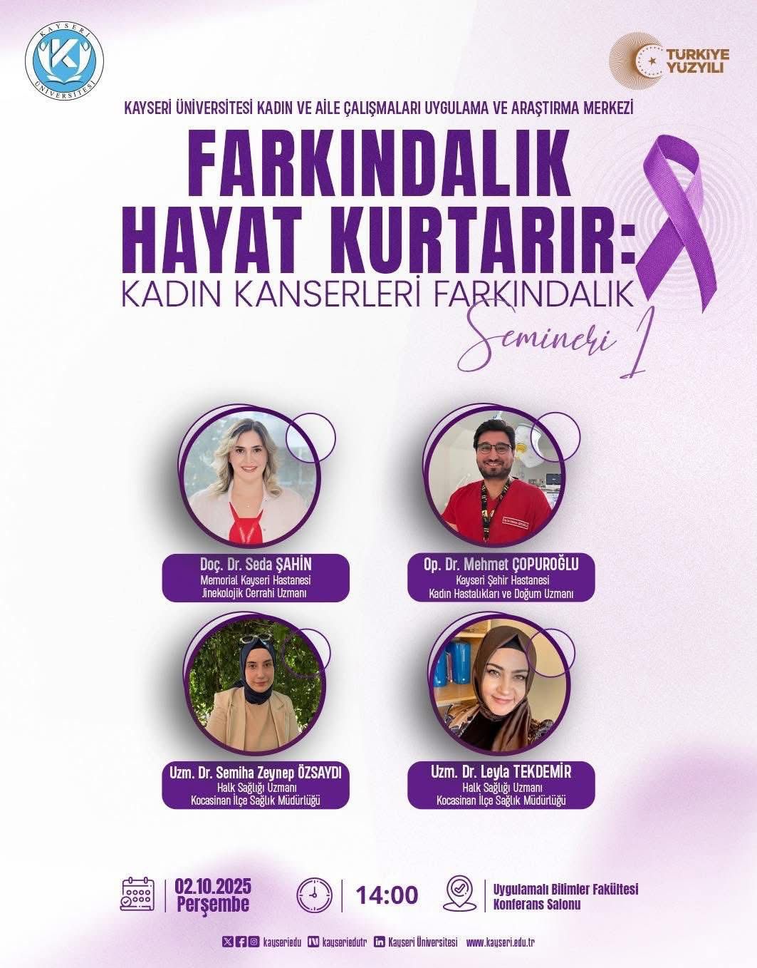 “FARKINDALIK HAYAT KURTARIR- Kadın Kanserleri Farkındalık Semineri” Üniversitemiz Kadın ve Aile Çalışmaları Uygulama ve Araştırma Merkezi tarafından düzenlendi. Başta Merkez Müdürü Sayın Doç. Dr. Hanife ABAKAY hocamız olmak üzere tüm emeği geçenlere teşekkür ederiz.